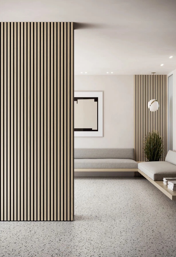 Dzięki elastyczności w kształtach i rozmiarach panele te mogą być używane do tworzenia ścianek dekoracyjnych, które dodatkowo poprawiają akustykę pomieszczenia.
